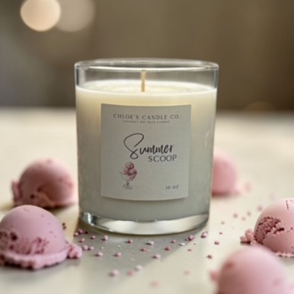 At Chloe’s Candle Co., we handcraft luxury candles using organic coconut soy wax blends, high quality fragrance oils and mica sparkle added to every candle that develops a clean, crisp and full scented burn with a sparkle.